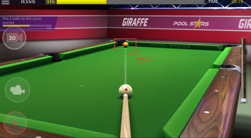 3、通过精准计算碰撞轨迹,将目标球送入指定球袋完成得分。