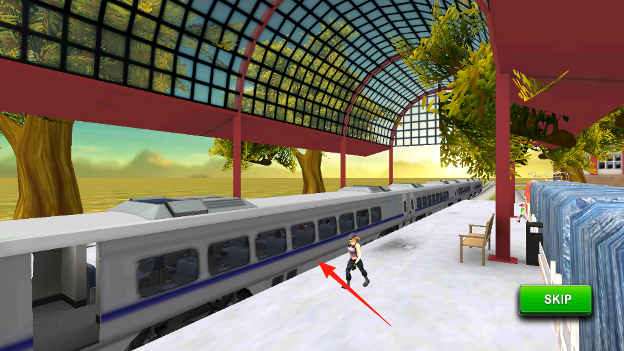 1、在主界面,点击绿色“Play”按钮(箭头指向),进入火车站台场景。