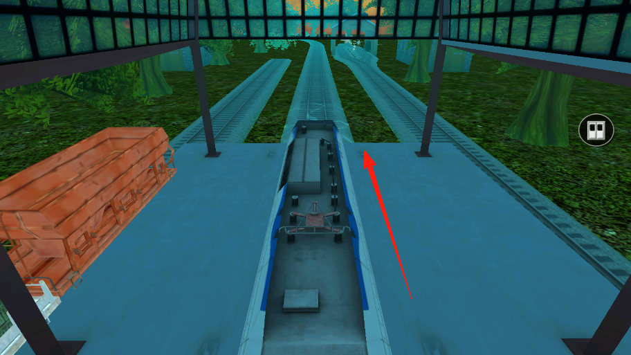 3、进入列车驾驶视角,沿箭头指向的轨道,启动火车,开始水下或轨道行驶任务。