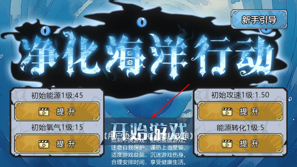 1、初始界面点击“开始游戏”,可消耗资源提升“初始能源”“初始攻速”等属性,强化角色能力。