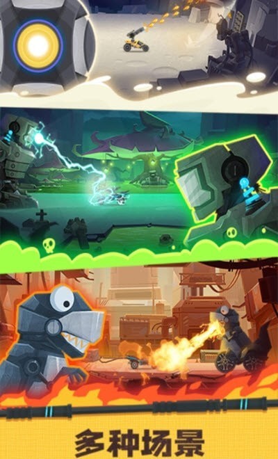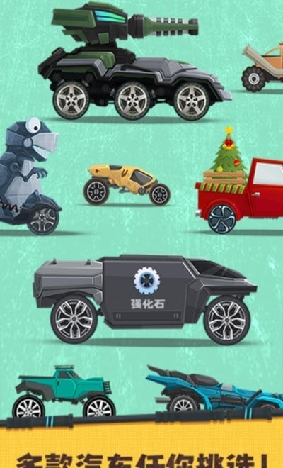 2、赛车自由组装:支持自由组装赛车,从车身结构到引擎、装甲等部件均可定制,同时能搭配机枪、导弹等不同武器,打造专属战斗赛车,满足个性化需求。