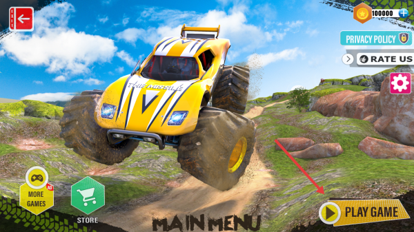1、进入怪物卡车游戏主界面,点击【PLAY GAME】按钮,开启越野驾驶挑战。