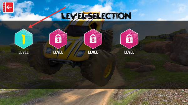 2、在【LEVEL SELECTION】界面,选择解锁的“LEVEL1”,开始首场怪物卡车越野关卡。