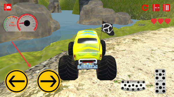 3、驾驶中利用左右箭头按键操控方向,依据赛道地形,配合油门等操作,驾驶怪物卡车穿越越野路段。