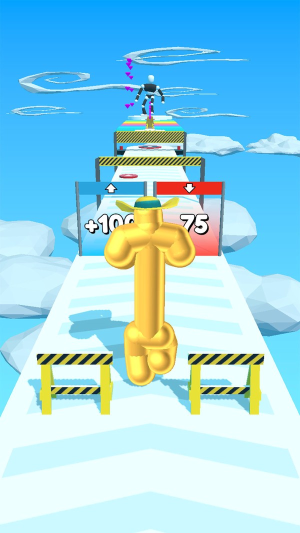 1、高空场景沉浸感:赛道全程设置在高空环境,搭配快速移动的跟随视角与风声音效,强化坠落风险带来的紧张感,提升跑酷代入体验。
