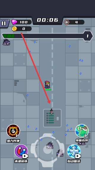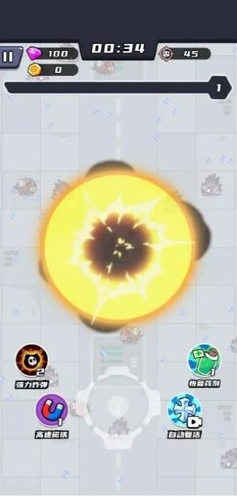 3、被怪物围困时,点击左下角的强力炸弹的按钮,释放炸弹清场,快速摆脱包围,继续推进关卡挑战。