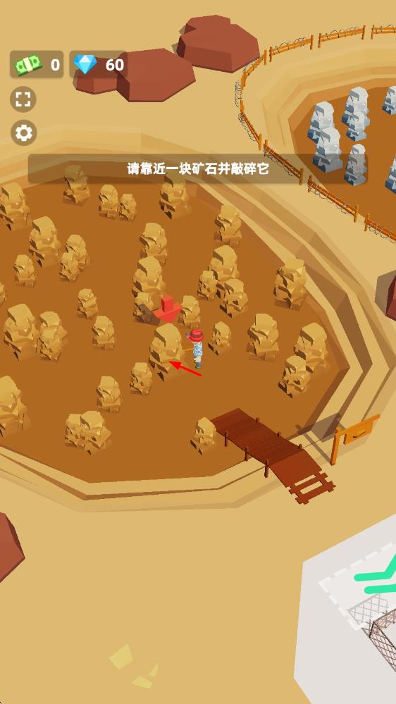 1、进入游戏后,从一块小土地和基础工具开始,操控角色挖掘地表矿石,收集第一桶金,为更换更好工具、扩大矿场积累初始资金。