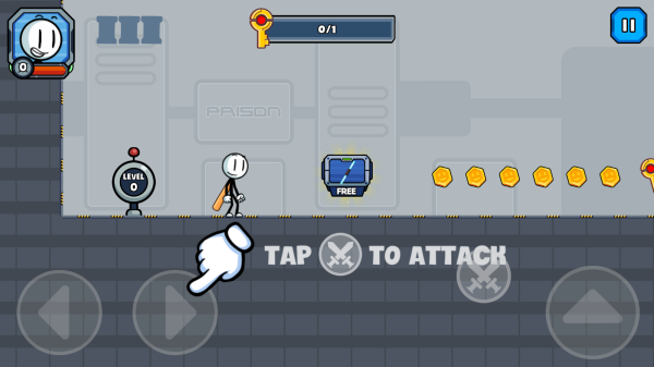 1、显示“PRISON”(监狱)场景标识,点击【TAPTOATTACK】操作提示进行移动人物,需要收集钥匙。