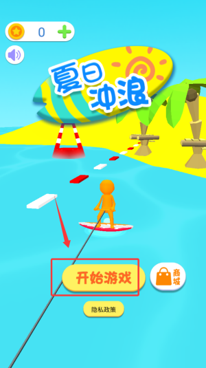 1、轻触开始按钮立即开启冲浪挑战,感受踏浪前行的快感。