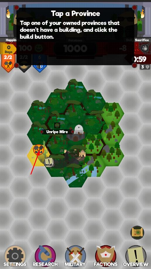1、进入游戏后,操控土豆勇者在初始地图移动,点击地面确定行进方向,收集沿途的基础道具与线索。