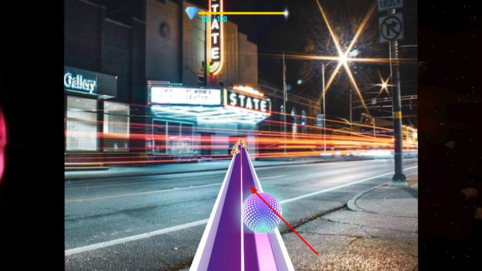 1、基础的操作控制:通过点击屏幕让小球跳跃,长按可实现高跳,滑动屏幕使小球滑行,根据音乐节奏在赛道上移动,避开如旋转齿轮、移动挡板等各类障碍物。