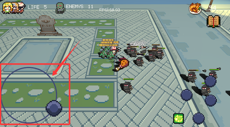 3、进入战斗后,使用左下方向轮盘控制角色移动,灵活攻击敌人。