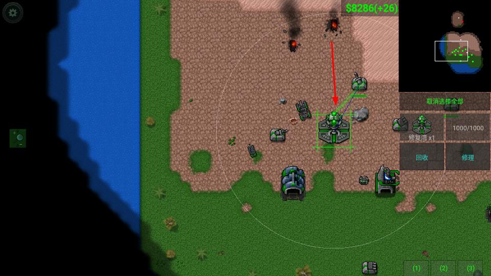 3、战斗中,利用右侧功能栏,按需建造、回收建筑,修复单位,合理规划赢取胜利。