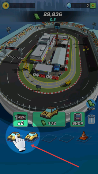 3、继续操作,通过消耗资金解锁多辆赛车,合理布局在场地,提升赛车数量,为后续比赛积累优势。