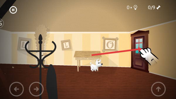 1、进入游戏页面后,依据左下角指引方向按键,操控小狗的移动,留意发光点等室内元素,开启初始探索。