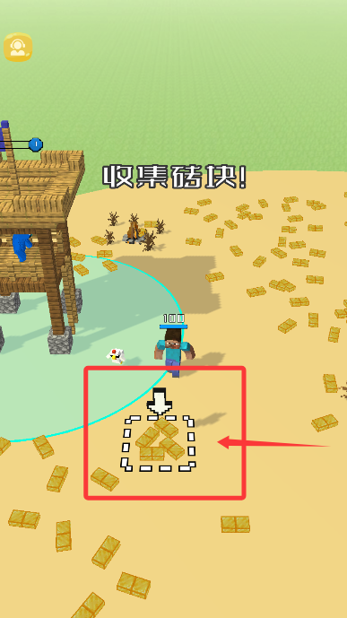 2、根据地面闪光标记指引,点击滑动操控角色采集物资。