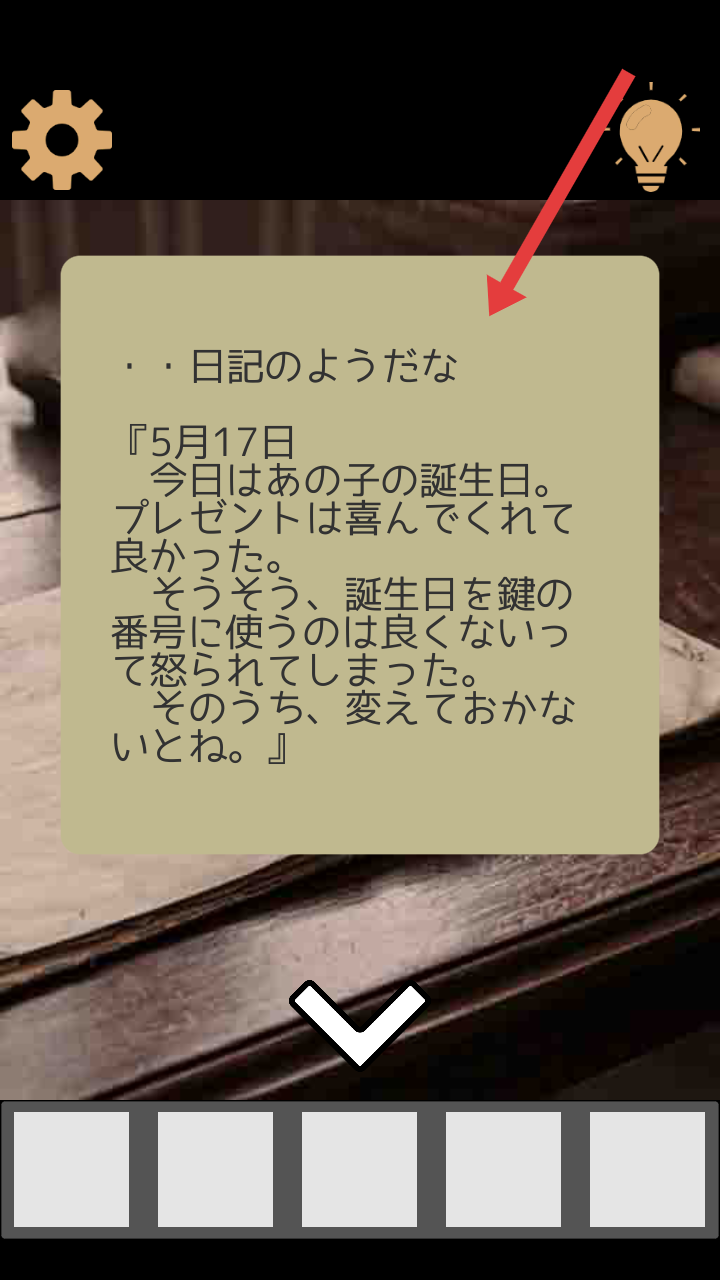 3、点击桌子上的日记进行查看,提取到【5月17日】日期的重要线索,该信息或用于破解密码类机关。