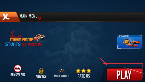 1、轻触主界面PLAY按钮立即开启极速狂飙之旅,感受引擎轰鸣的竞速快感。