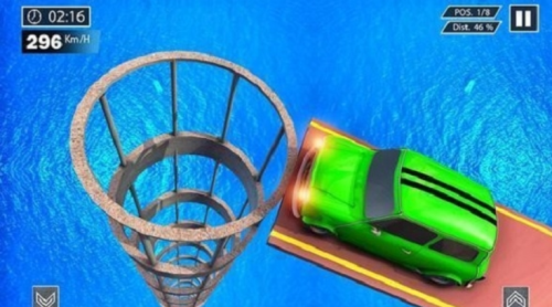 4、通过虚拟方向盘控制车辆完成特技动作,在限定时间内抵达终点赢得冠军荣誉。