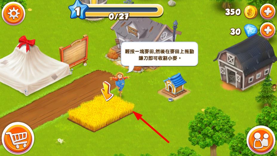 1、进入游戏后从一片基础农田起步,熟悉模拟操作界面的各项功能,点击可耕种土地选择适宜的农作物种子进行播种,学习浇水、施肥。