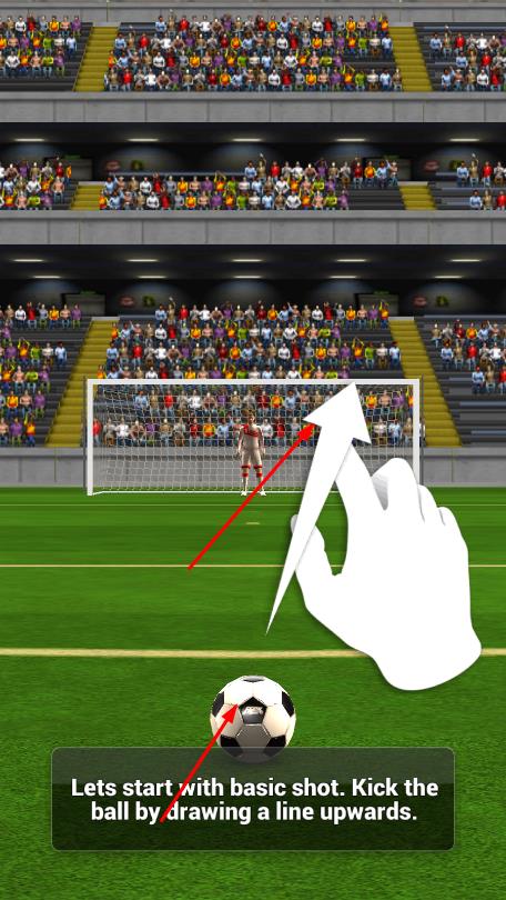 1、开始基础射门,在足球处向上划线,完成踢球操作,尝试命中球门目标。