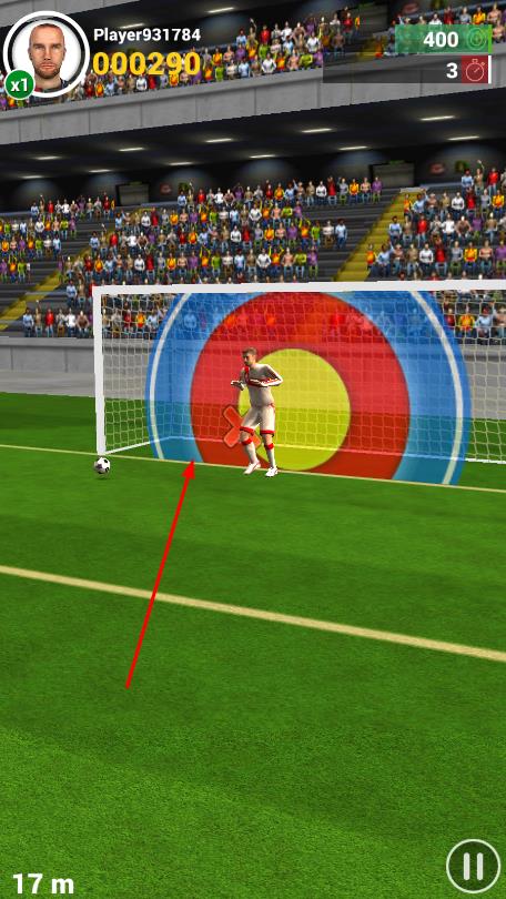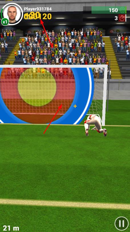 3、瞄准球门区域,避开守门员,努力射中高分区域,获取更高游戏积分。