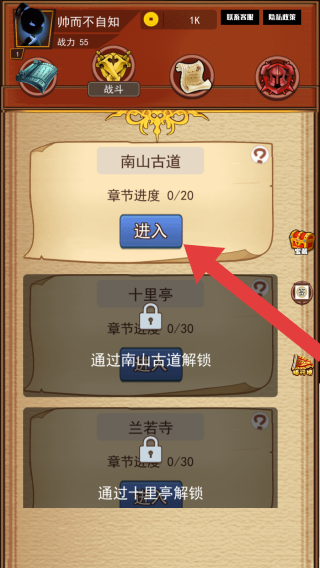 1、玩法入口:南山古道,其中(十里亭、兰若寺)暂时未解锁,呈现游戏关卡解锁推进的结构。