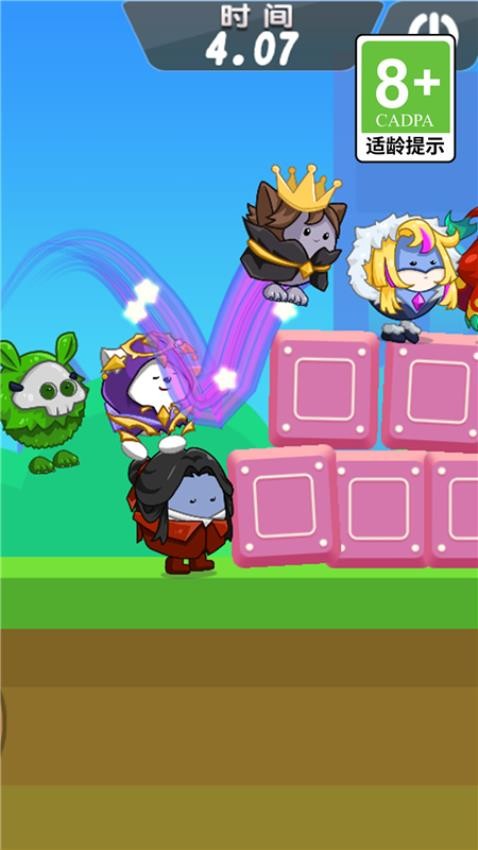 3、精美的卡通渲染风格,角色动作流畅自然。成功跨越障碍时触发的庆祝特效,带来满满的成就感反馈。