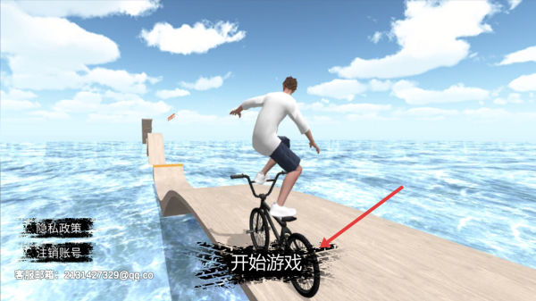 1、主界面点击【开始游戏】,操控角色骑BMX自行车,进入户外特技赛道。