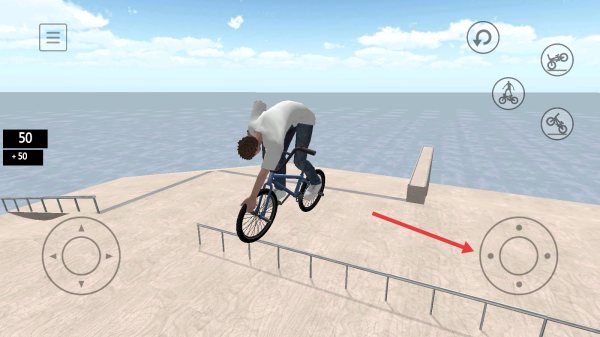 3、遇到栏杆等障碍,配合右侧动作轮盘,做出特技动作,顺利通过并完成挑战。