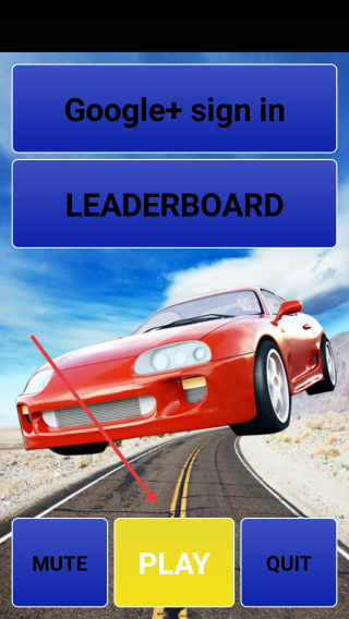 1、主界面点击黄色【PLAY】,进入公路赛车游戏,操控车辆开始挑战。