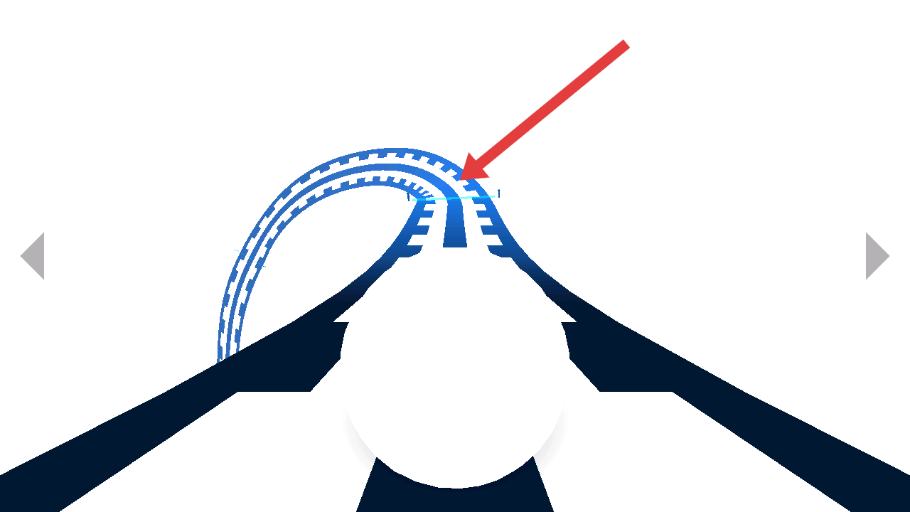 2、观察箭头指向的轨道交汇处,调整轨道拼接方向,确保球体能够顺利通过弯道进入下一段路径。