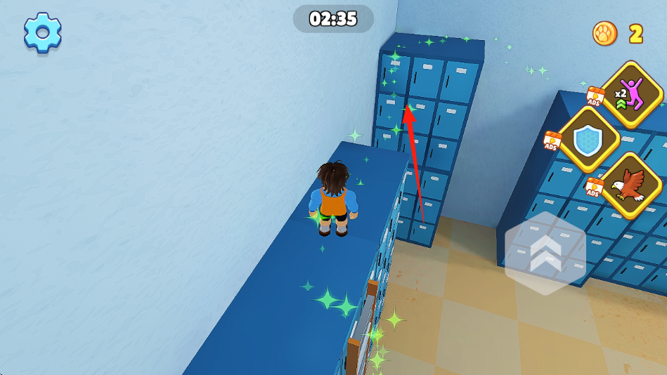 3、在储物柜区域,沿箭头探索,收集闪光物品(星星特效),积累资源,解锁新场景、功能。