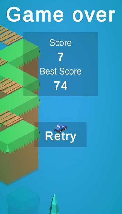 3、若小车坠落,界面显示“Game over”及分数,点击“Retry”可重新挑战,争取更高成绩。