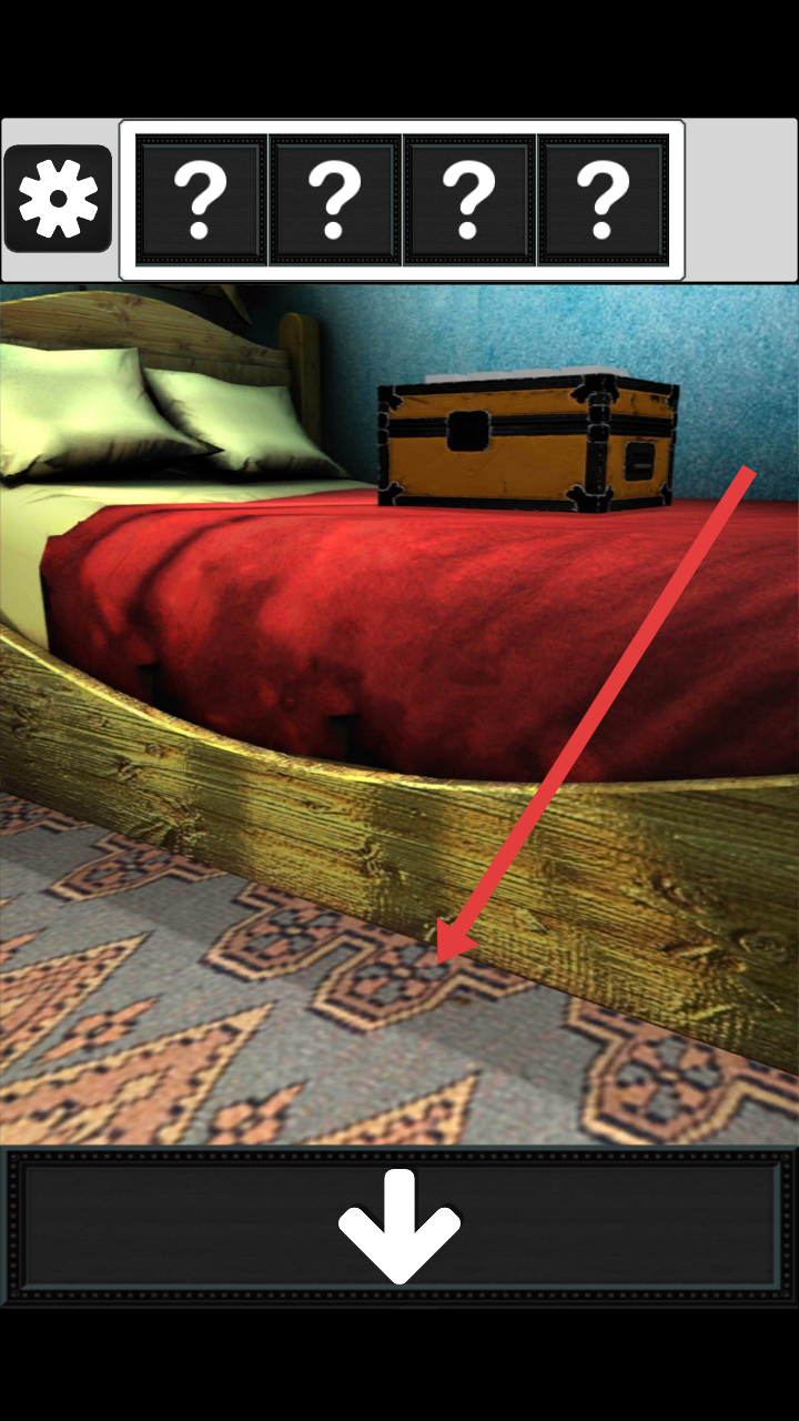 1、进入逃脱游戏复古房间之谜游戏后,点击床的位置,跟着白色箭头往下翻,看看床底下藏着啥线索。
