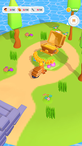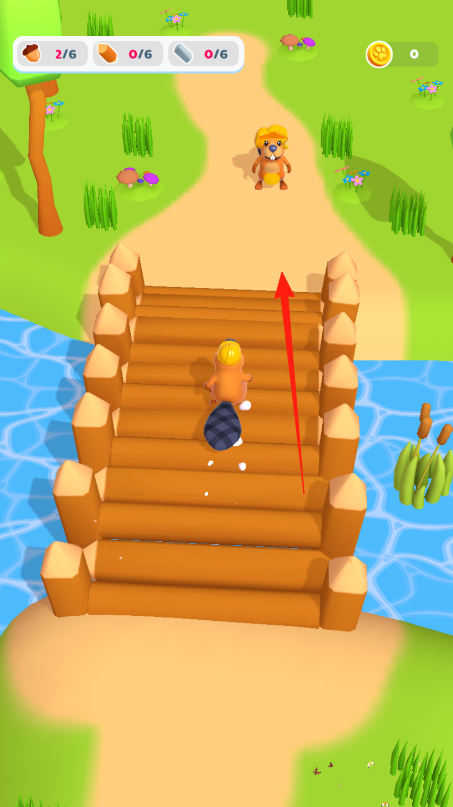 3、收集来的木材可以用来搭建木桥,通过木桥,前往新区域,遇到其他海狸,可能解锁合作、交易,推进游戏,用资源建造、升级,解锁玩法。