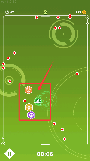 2、控制角色在安全区域移动,避开红色危险目标收集增益物品。