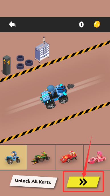 2、挑选心仪造型的炫酷卡丁车,确认选择后点击前进图标。