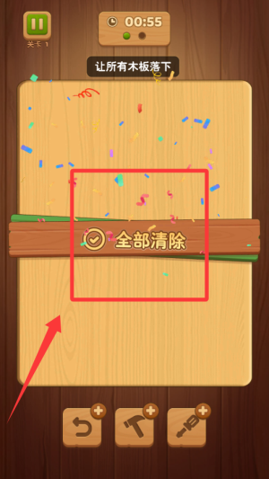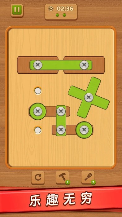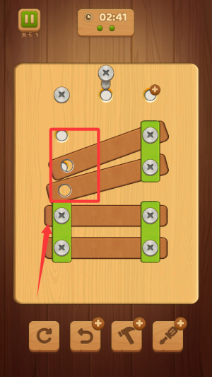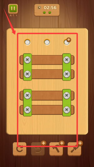 1、进入关卡后先观察木板和螺丝钉的布局,找到可以点击的螺丝钉位置,合理顺序拆除能让木板顺利掉落。