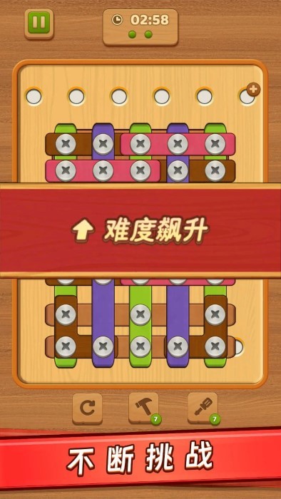 螺丝钉解谜手机版通过巧妙移除螺丝钉来解构木板装置。每关都需要精准判断拆除顺序,在保持结构稳定的前提下让部件完美脱落。简洁的点击操作背后暗藏精妙策略,随着关卡推进将解锁更复杂的立体拼图。考验空间思维与逻辑推理能力,适合喜欢脑力激荡的挑战者体验。