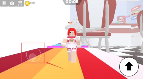 3、滑动灰色摇杆,控制红发角色移动奔跑。