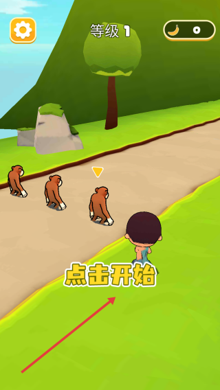 1、在等级1界面点击开始,带领初始猴子队伍,进入冒险路径,开启动物养成战斗之旅。