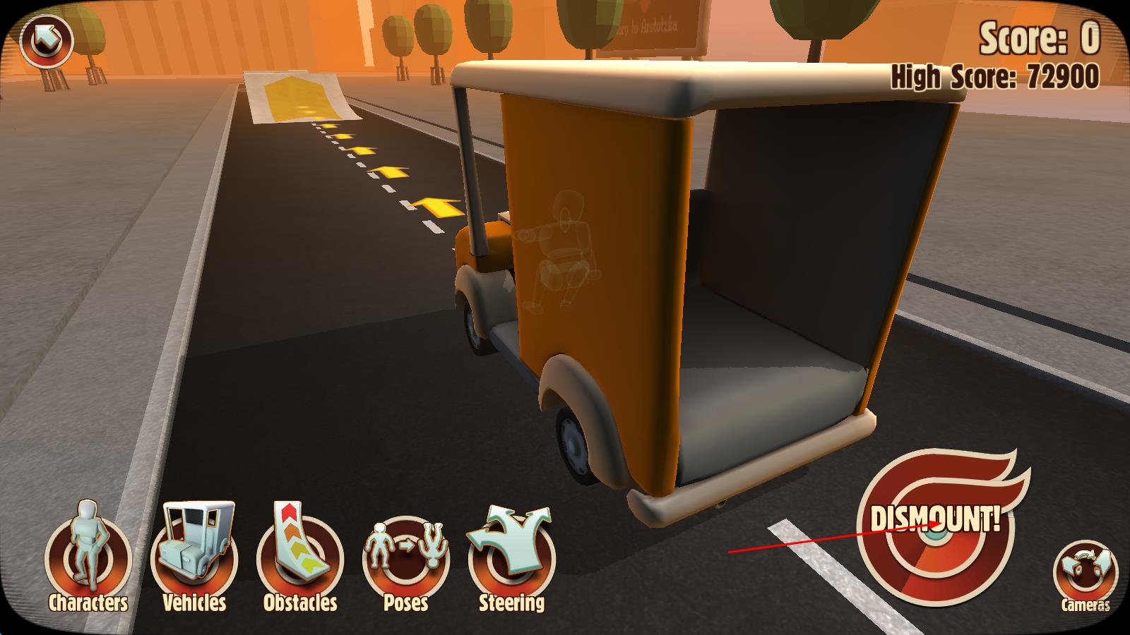 1、进入游戏后,操控木偶人站在合适位置,等待车辆驶来,找准时机让车子撞飞自己,开启撞击地面的挑战不同的位置受伤会获得不同的分数加成。