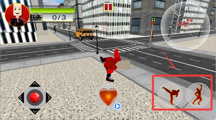 4、点击右侧按键可以攻击,分别是踢和拳击。