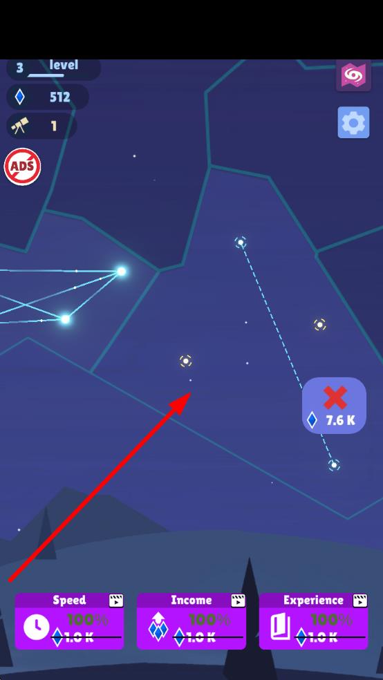 3、成功连接星图区域,达成关卡进度,解锁新星图板块,如果钻石不足的话,可通过积累资源、触发加成道具重试,不断拓展星图连接范围。