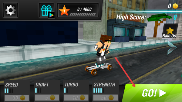 2、行驶中收集金币,用于提升SPEED、DRAFT、TURBO、STRENGTH等属性。