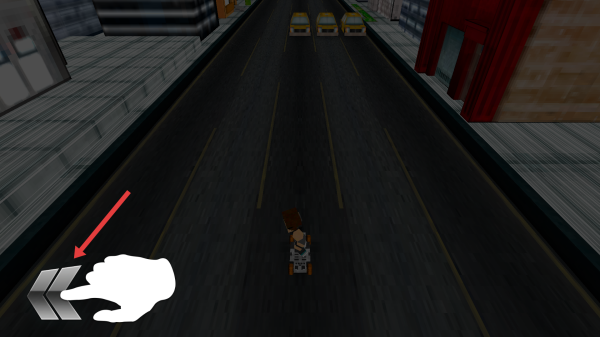 1、点击GO开始游戏,通过左右箭头按键操控滑板角色在城市街道移动,躲避前方车辆。