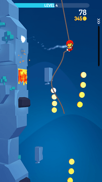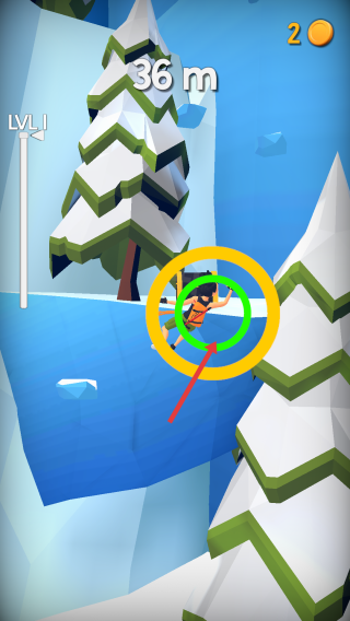 3、攀爬时收集金币,避开脱落冰块,抵达更高高度,完成LVL1等关卡,挑战更复杂地形。