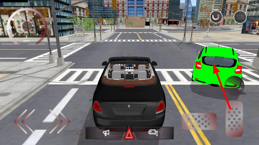 2、行驶在城市道路上,遵守交通规则避开行人与其他车辆,体验劳斯莱斯的平稳操控,在路口精准停车等待信号。