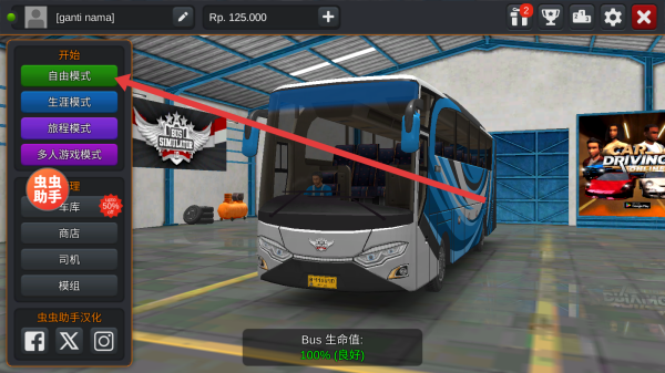 1、进入车库界面,点击自由模式,开启巴士驾驶之旅,可在多样玩法中选择,开启不同游戏体验。